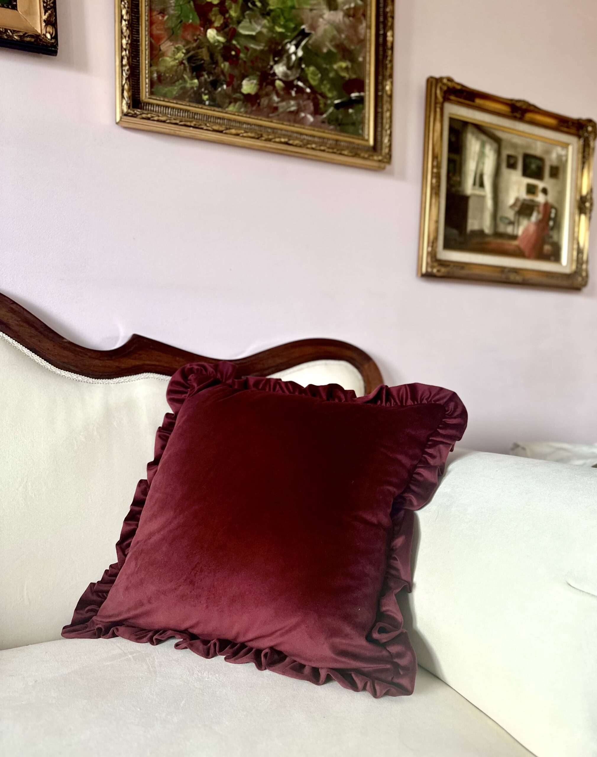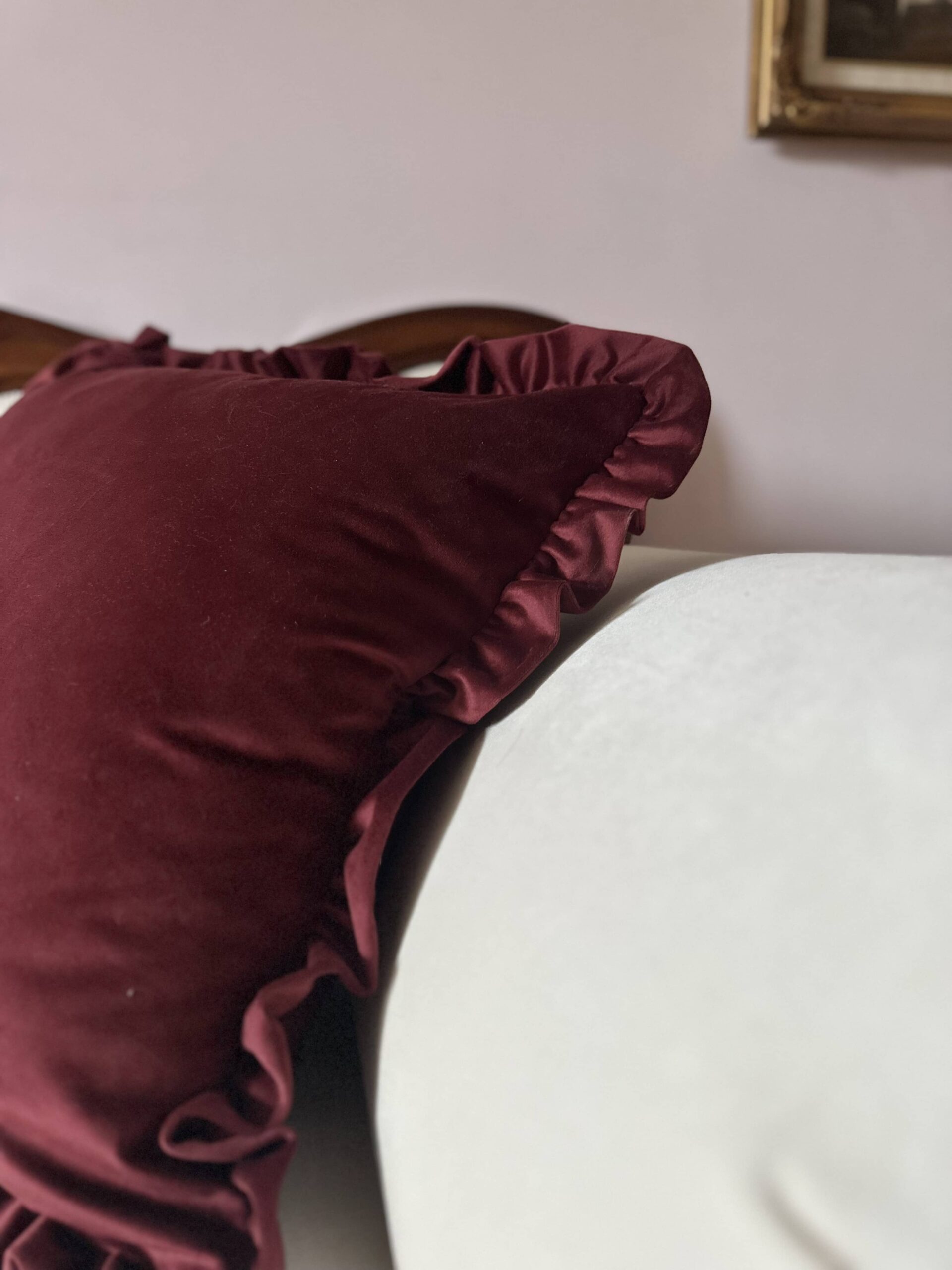 Ballerina Velvet Pillow Case – Deep Burgundy with Ruffles